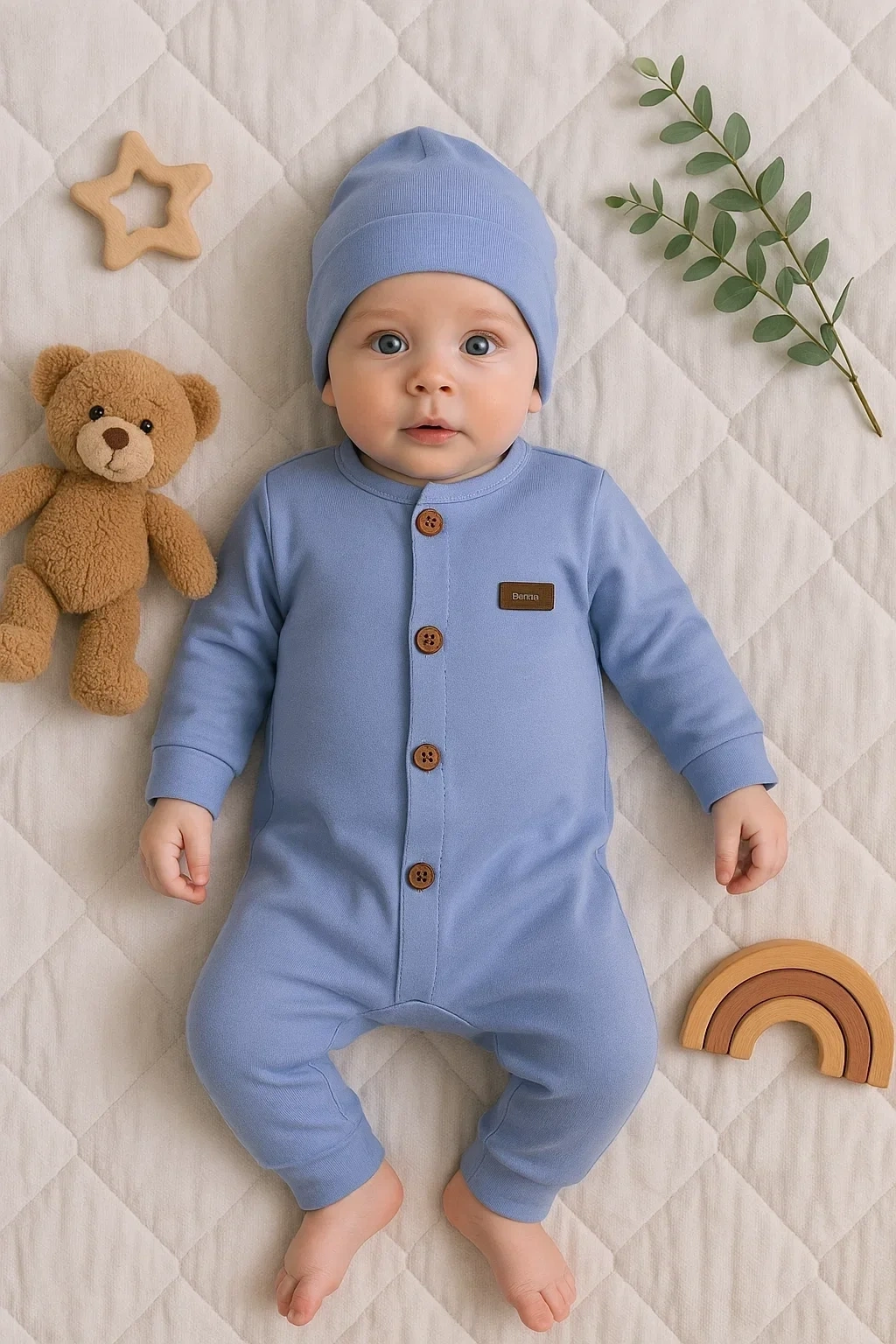 Battaniyeli Tulumlu Erkek Bebek Set %100 Pamuk