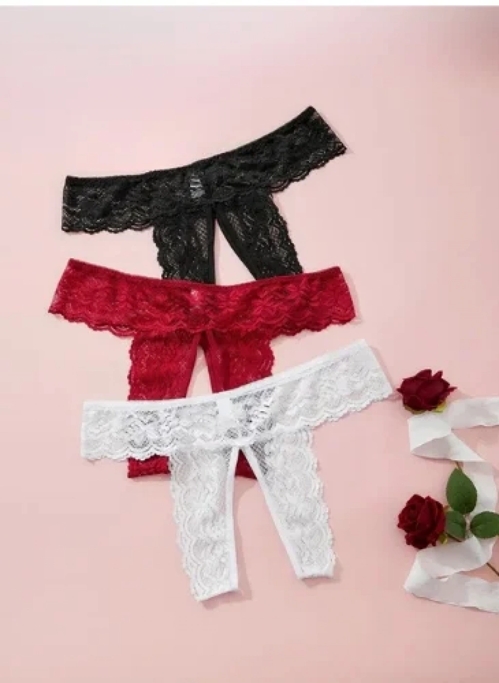Paket içeriği 3'lü dür. 1 adet Kırmızı 1 adet Beyaz ve 1 adet Siyah Dantel Tangadan oluşur. Dantel tangalar esnek ve Rahattır. Özel Bölgesi ön ve arka kısmı açıktır. Şıklığı ve çekiciliği bir arada sunan Kadın 3'lü Özel Bölgeleri Açık Dantelli Tanga seti, özel anlarınıza cesur bir dokunuş katıyor. Kırmızı, beyaz ve siyah renk seçenekleriyle sunulan bu set, hem romantik hem de iddialı bir tarz arayanlar için mükemmel bir seçim! Ürün Özellikleri: ✔ Seksi Tasarım: Özel bölgelerin açık bölümü ile çekici ve cesur bir görünüm sunar. ✔ Dantel Şıklığı: Yumuşak ve zarif dantel detaylarıyla feminen bir hava katar. ✔ Üç Renk Seçeneği: Kırmızı: Tutkulu ve etkileyici bir stil için ideal. Beyaz: Saflık ve zarafeti yansıtan romantik bir seçenek. Siyah: Gizemli ve farklı bir görünüm sunar. ✔ Rahat Kullanım: Esnek yapısı sayesinde tam oturur ve konforlu bir deneyim sağlar. ✔ Fantezi İç Giyim: Özel anlar için, ihtiyacınızı artıran bir model. İç Giyim Sekside Cesur Bir Seçim! Bu özel tanga seti, fantezi iç giyim, özel bölümler açık tanga, dantelli ip, seksi iç çamaşır gibi arayışlar içinde olanlar için idealdir.